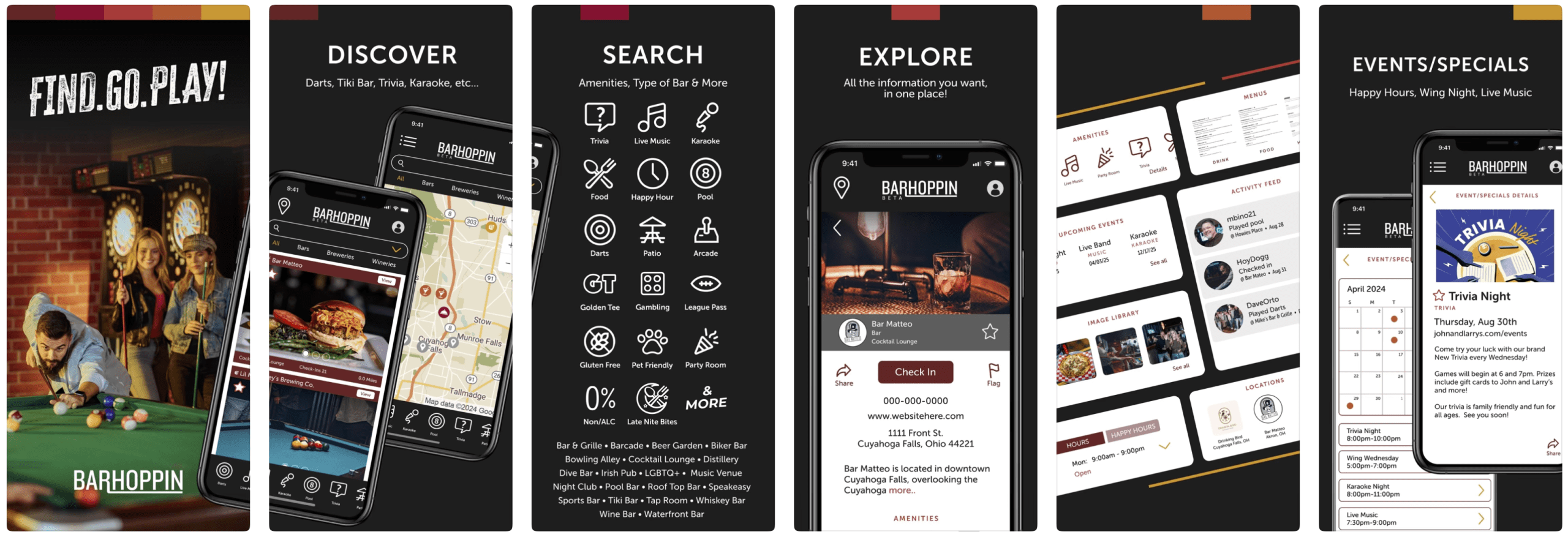 GoBarHoppin is a nightlife discovery platform designed to help users find bars, breweries, and wineries based on the experiences they’re looking for. Instead of simply listing venues, the platform allows users to search by amenities such as pool tables, dartboards, karaoke, patios, food, and live music.